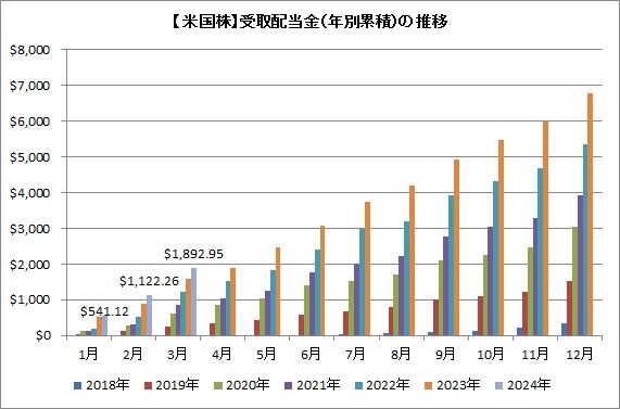 現時点では昨年4月時点の累積配当(1,883.27ドル)を少し上回る額を受け取っているようです。