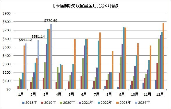 米国株からは770.69ドルを受け取りました。
