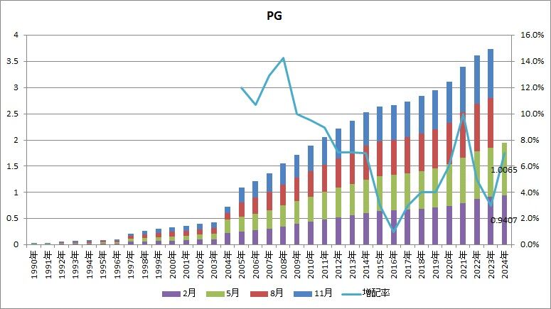 生憎、私は買い増しをしていきたので、平均取得価格は100ドル以上になっているはずですが、PGなら多少株価が上昇した時に買っても安心して持っていられるなと思います。