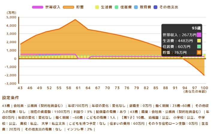 結果は93歳までは貯蓄額がプラスを維持できたようです。
