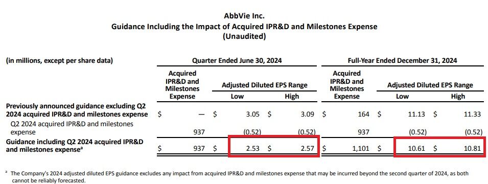 それによると、一時的な医薬開発費用9.3億ドルを除く、4-6月期の調整後一株利益は2.53~2.57ドルの範囲になるとのことです。