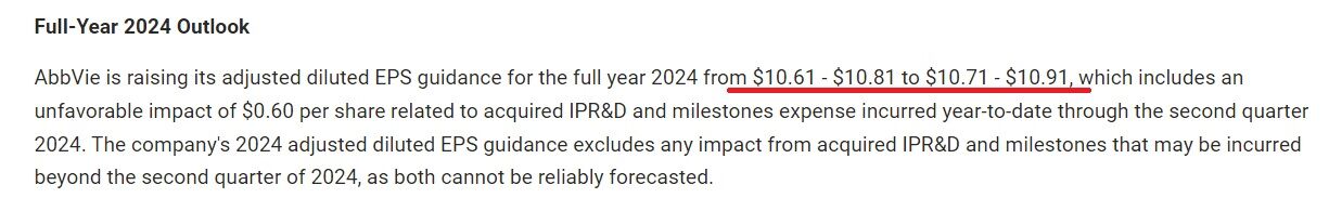 アッヴィ自身が7月上旬に公表していた一株利益は2.53~2.57ドルでしたので、こちらは大幅に超えてきましたね。