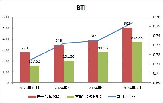 BTIからはまだ4回分しか配当を受け取っていないですが、すでに累計額は1,000ドル超えています。うま味が凄すぎる。