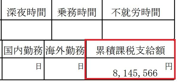 先日、10月分の給与明細を確認したところ、累積課税支給額が814万円となっていました。