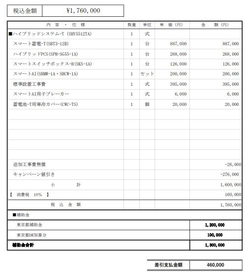 あ、我が家の(蓄電池の)見積もりと同じだと。