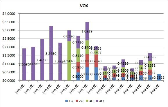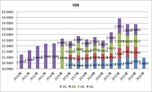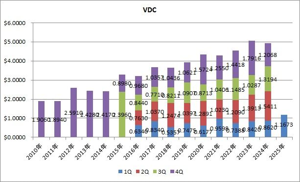 単価は0.9487㌦で、前年同期比0.8%減でした。ここ数年VDEは減配が多くなっていまして、2023年1Qからの9四半期で7回も前年同期比の減配となっています。