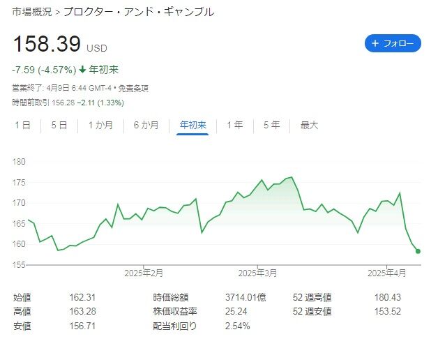 プロクター&ギャンブル(PG)が次回の四半期配当で5%の増配を発表しました。