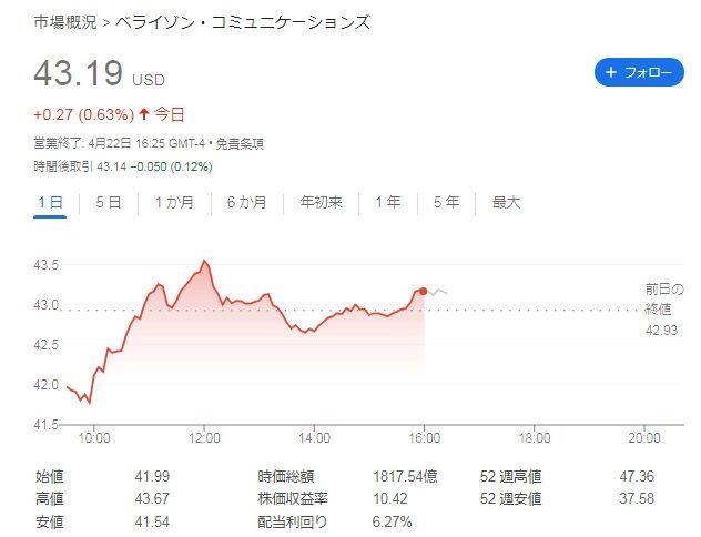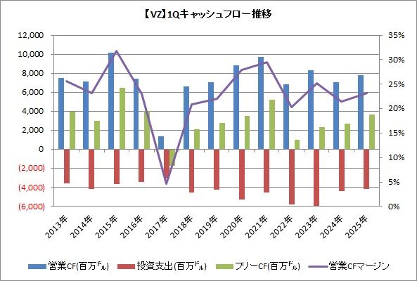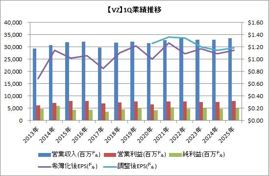 ベライゾン・コミュニケーションズ(VZ)が2025年1-3月期の決算を発表しました。内容は良かったです。