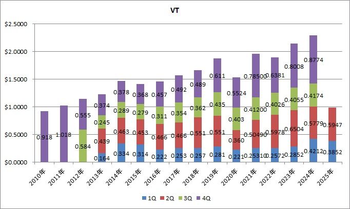 VYMは皆さんの(増配の)期待が高いだけに、減配が起きると、悲劇のように語られることが多いですが、四半期ベースで見ると、結構な頻度で減配しています。