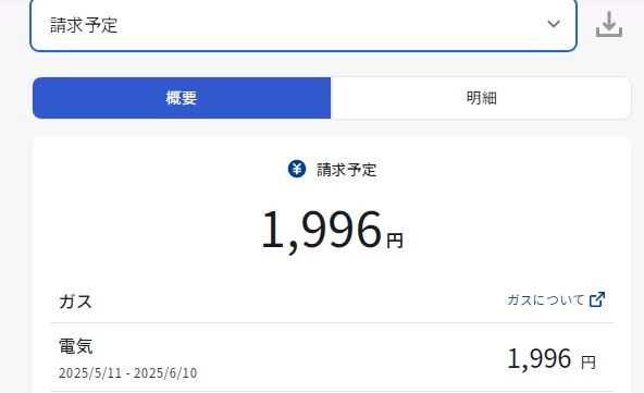 ちなみに5月11日~6月10日分は電気代だけはわかっているようで、こちらはさらに減って1,996円の予定です。