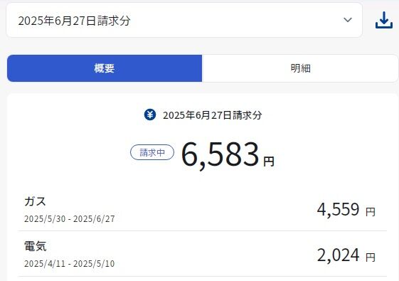 でしたので、ガスが900円くらい増えちゃっていますが、電気は約半減しましたね。