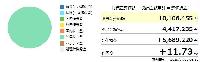 私が確定拠出年金口座で保有する銘柄の資産評価額が、、