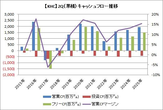 1-6月期の営業CFは19.29億ドル(同12.6%増)、投資支出は4.25億ドル(同21.7%減)、フリーキャッシュフローは15.04億ドル(同15.8%増)でした。