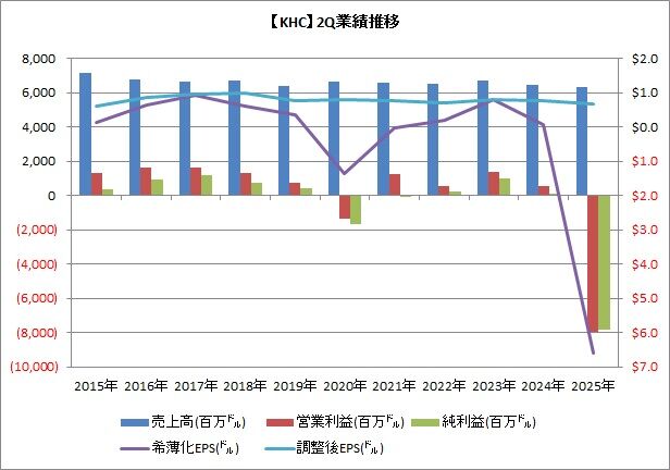 先ほどクラフト・ハインツ(KHC)が決算を発表しましたが、、、のれん代と無形固定資産について計93億ドルの減損を計上しまして、営業損失、純損失となりました。
