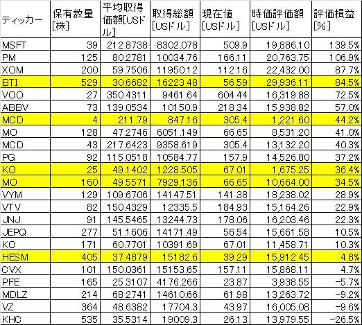 XOMは長らく持っているので+87.7%(+100%超えの時もあった)もありますが、同業のCVXは+4.7%どまりなのは保有期間が短いからです。
