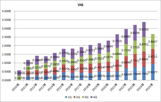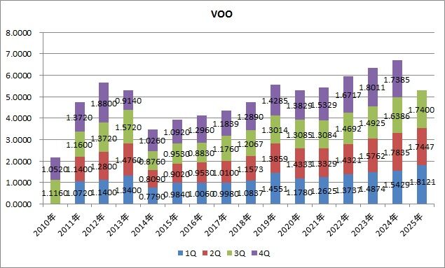 1Q~3Q累計分配金は2.6736ドルで、前年同期の2.5035ドルを6.8%上回っています。VOOと同じようなペースですね。年間での増配も大丈夫そうです。