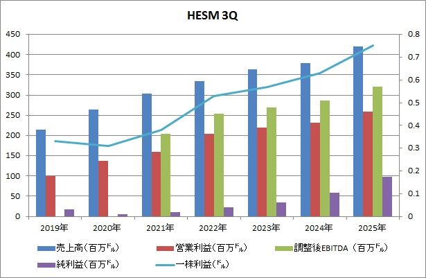 ガイダンスについては10-12月期の調整後EBITDAが3.15~3.25億ドル(2024年4Q実績は2.98億ドル)とし、純利益が1.70~1.80億ドル(同0.70億ドル)としました。