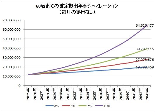 ⇒もう働きたくないんで、今すぐ退職して(拠出がなくなったとして)、現在の資産だけで運用するパターン。