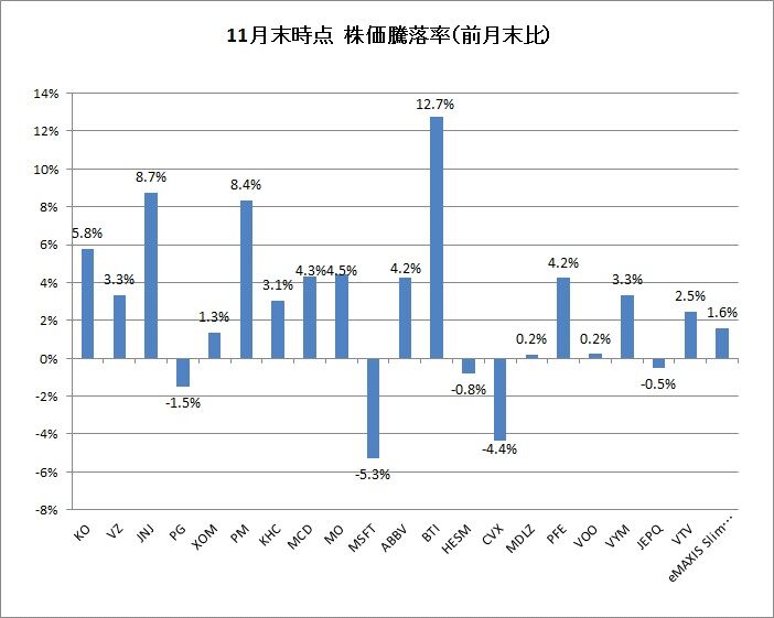 11月の米国株市場が閉じましたので、運用状況を報告します。