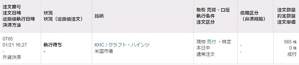 持っているクラフト・ハインツ株の565株、全て売却します。