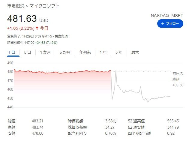 なのに、、28日のアフターマーケットでは7%超の下落となってしまいました。
