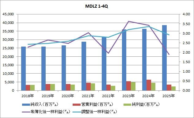 誰もモンデリーズになんて興味ないと思うのですが、最近決算も発表されていたので、こちらの紹介もしておきますね。