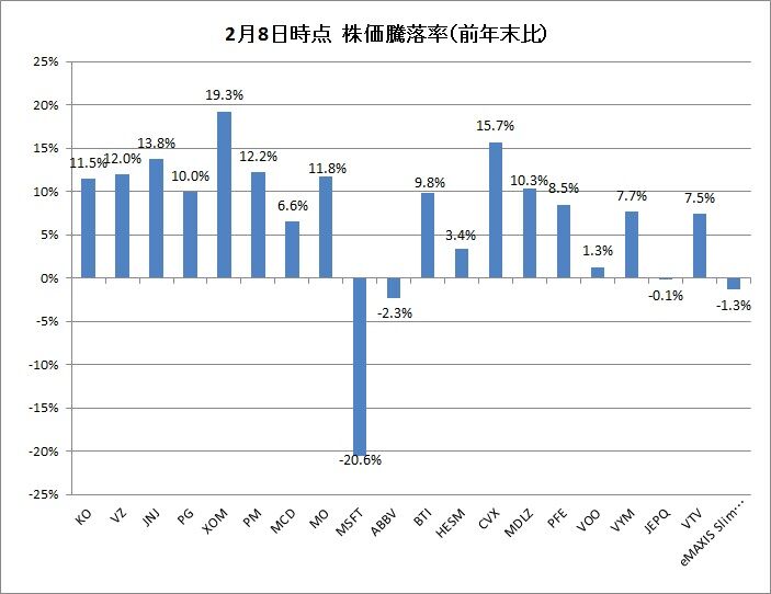 前年末比での株価騰落率を見ると、明らかです。